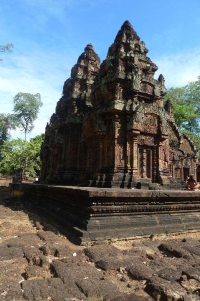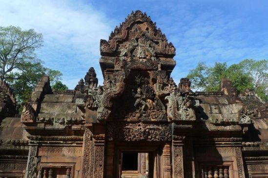 Banteay Srei or Banteay Srey (Khmer: ប្រាសាទបន្ទាយស្រី) is a 10th century Cambodian temple dedicated to the Hindu god Shiva. Located in the area of Angkor in Cambodia.