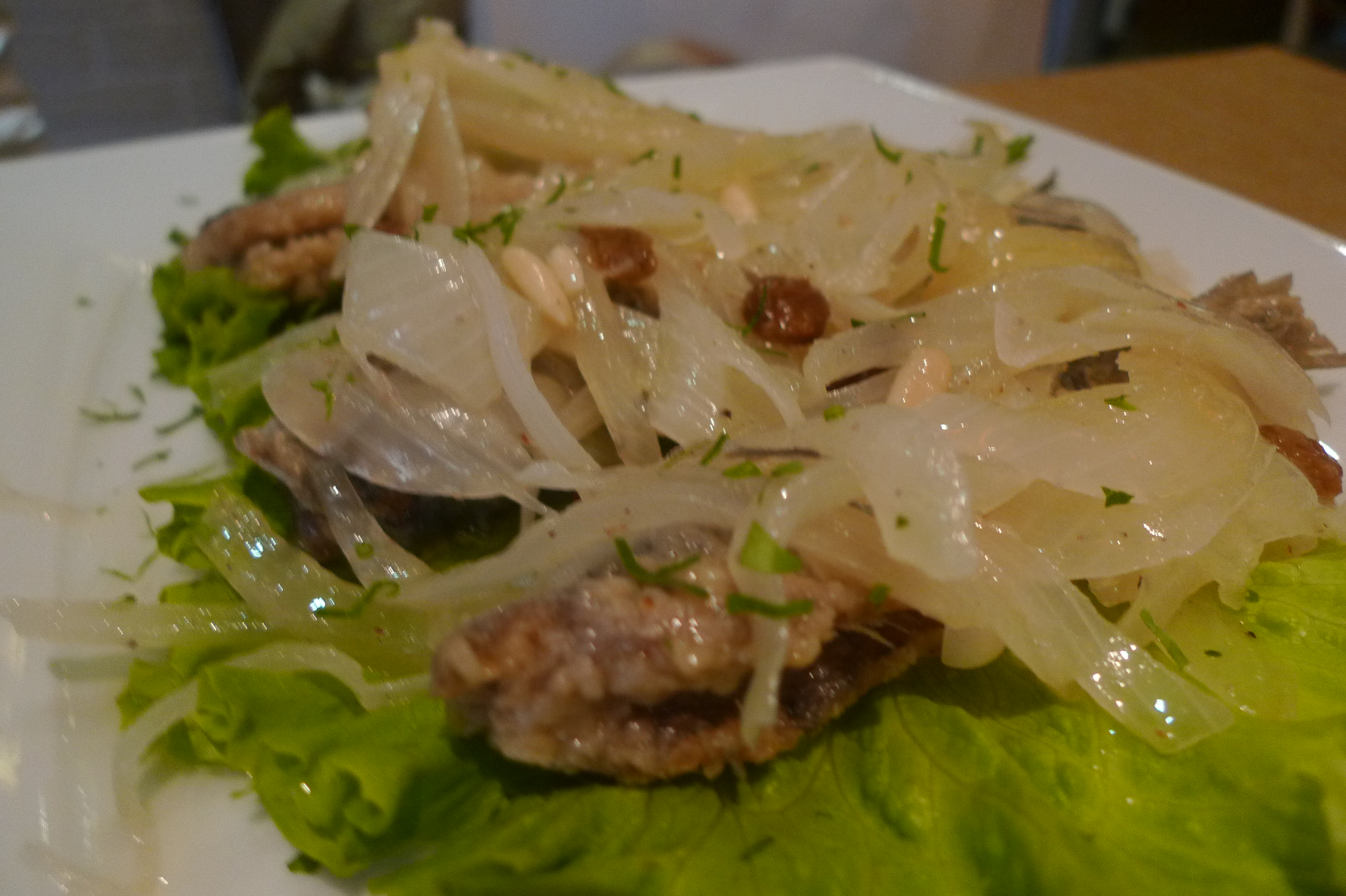 We also tried a traditional Venetian appetizer called sarde in saor which is essentially cold sardine preserved in vinegar and some other ingredients. I like fish in general so I liked the dish, but it may not be to everyone’s taste because it’s quite fishy.