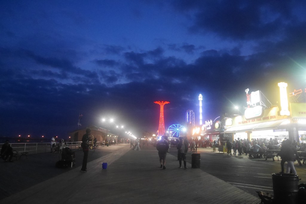 I had a strong compulsion to return to Coney Island for a while– to see the rides at Luna Park at dusk, to walk along the boardwalk during sunset. There was something about the neon lights and bright rides that invoked in me a certain kind of longing, as if I had a fond childhood memory there I am trying to bring back to life. Except that I’ve only been to Coney Island as a tourist, in my adulthood, so I found this strong nostalgia out of place.
